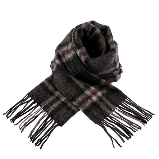 This Welsh Woollens scarf is crafted from 100% pure lambswool and features a chequer tartan pattern in elegant purple tones. The fine wool offers e...