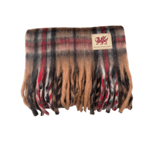 Welsh Woollens Tartan Blanket Scarf Thomson Camel