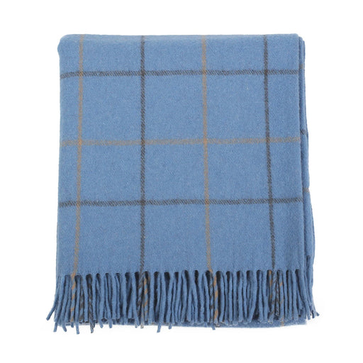 Welsh Woollens Recycled Wool Tartan Blanket Throw - Sky Blue Check