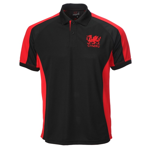 Kids Welsh 'Cai' Cooldry Black Polo Shirt Cooldry Breathable Fabric 100% Polyester Black with Red Contrast Also Available in Adult Sizes Embroide...
